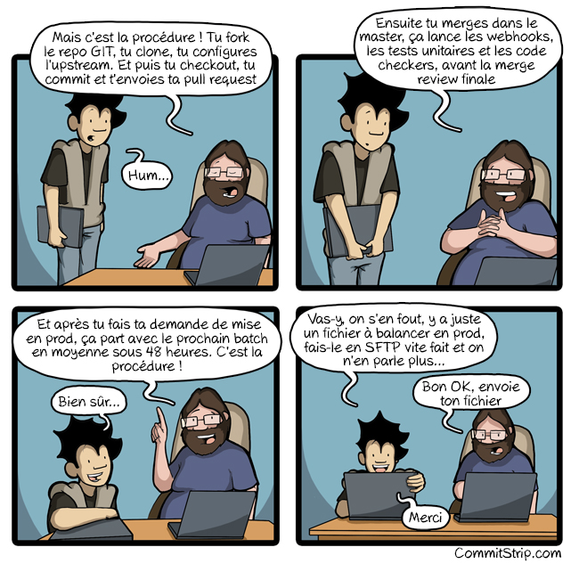 Il est parfois utilisé comme outil de déploiement (envoi du code finalisé vers le serveur public), mais pas toujours. Les services d’hébergement web ne supportent pas toujours les protocoles nécessaires (SSH+Git).